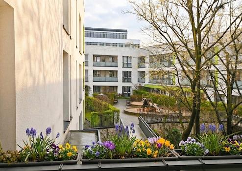 Die 126 qm Wohnung hat eine attraktive Südausrichtung, die auch von der östlichen Morgensonne und der abendlichen Dämmerung profitiert. Mit dem Fahrstuhl erreichen Sie den Eingang dieser barrierefreien Wohnung bequem aus der Tiefgarage.