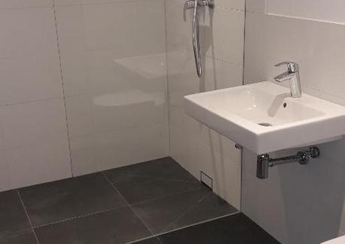 - 1 Bad mit WC, Waschtisch und bodengleicher Dusche,