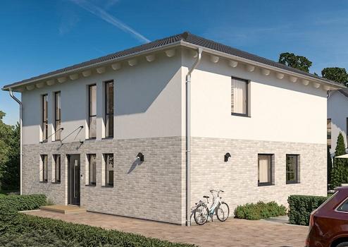 Das zweigeschossige Mehrfamilienhaus mit zwei Wohnungen überzeugt mit einer klassisch eleganten Architektur mit Walmdach und zwei behaglichen Terrassen. Der Hausentwurf kann mit Stahlbalkonen an der Gartenseite ...