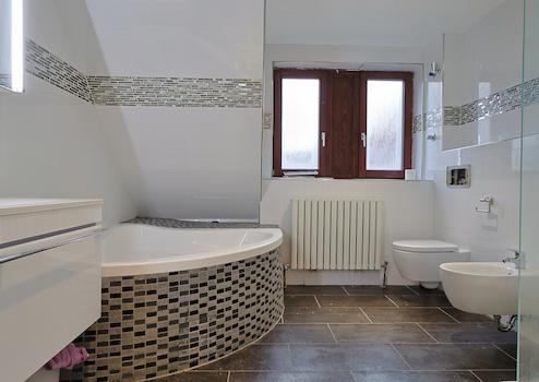 - Vollbad mit Eckbadewanne und Dusche