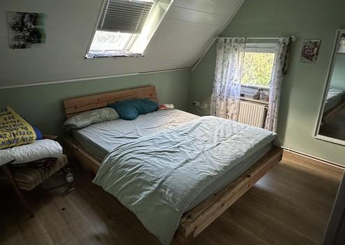 Über eine Holztreppe kommt man in die zweite Etage mit zwei Schlafzimmern und einem WC. Eine weitere halbe Treppe führt schließlich auf den ehemaligen Heuboden, der zwischenzeitlich als Einliegerwohnung genutzt wurde. Hier befinden sich ein Abstellraum, ein Badezimmer und ein weiteres großes Schlafzimmer.