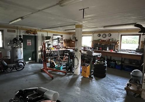 Im ehemaligen Stallbereich wurde eine Werkstatt eingerichtet. Es gibt eine befahrbare Garage und im Untergeschoss drei weitere Räume als Abstellmöglichkeit.