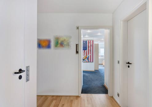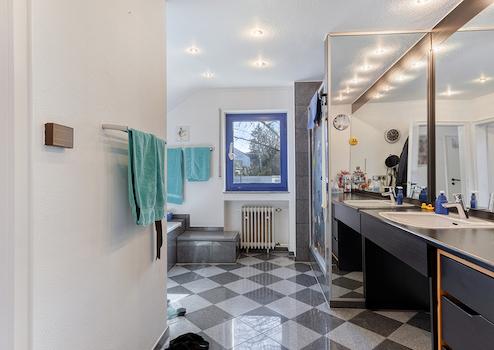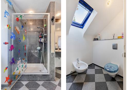 Dachgeschoss: Elternschlafzimmer, Kinderzimmer I, Kinderzimmer II, Gästezimmer (respektive Büro), Diele, Bad (mit Dusche, Wanne, abgetrenntem WC und Bidet), Gäste-WC (mit Dusche)