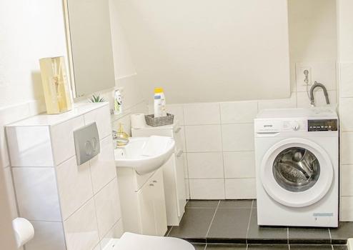 Die neu eingebaute Küche ist vollständig ausgestattet. Das Badezimmer überzeugt durch ein modernes, aufgeräumtes Design.