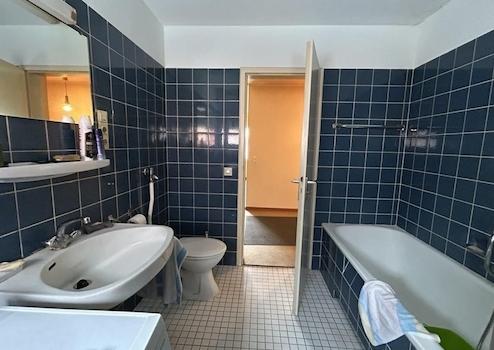 Erdgeschoss (ca. 109 m²) – 3 Zimmer, vermietet (Kaltmiete 658 €). Großzügiger Grundriss, separate Küche mit Eckfenster, Tageslichtbad mit Dusche und Badewanne, Gäste-WC, großer Freisitz mit Gartenzugang sowie zusätzlicher Balkon. Gepflegter Zustand mit weiterem Entwicklungspotenzial.