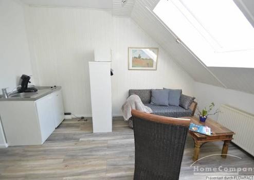 Dieses helle Apartment liegt in der 1. Etage. Das Zimmer hat einen etwas separierten Wohnbereich mit TV und einer integrierten Kochzeile. Das Schlafzimmer schließt sich gleich an. Das Badezimmer ist über den Flurbereich zu erreichen. Eine Terrasse und der Garten stehen zur Mitbenutzung zur Verfügung.