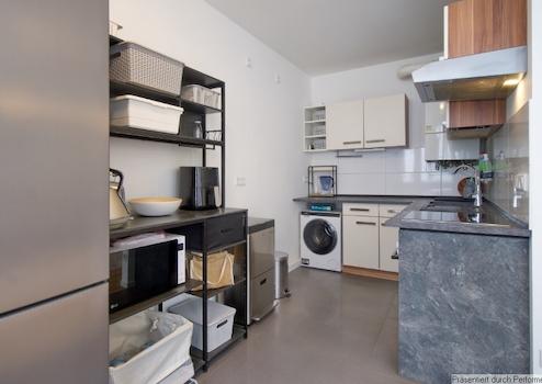 Diese Wohnung ist für Berufstätige, die mit Partner oder einer kleinen Familie anreisen, perfekt geeignet. In wenigen Minuten erreicht man den Stadtteil Pempelfort und in 15 Minuten zu Fuß den Rhein.