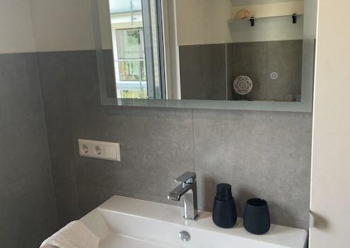 2 Zi.Whg., Neubau, hochwertig möbliert, 1. OG, mit großzügiger Terrasse (über eine Außentreppe zu erreichen), Panoramablick. Großes, offenes Wohnzimmer mit integrierter Küche / Kochinsel. 1 Schlafzimmer (mit Zugang zur Terrasse) mit Doppelbett, begehbarem Kleiderschrank sowie Zugang zum Bad mit Dusche mit gr. Regendusche. In jedem Raum befinden sich bodentiefe Fenster mit elektrischen Außenlamellen sowie an den meisten Fenstern Plissees als Sichtschutz. Sep. Gäste-WC; Wasch-/Abstellraum. Ein weiterer Abstellraum im EG, z.B. für Fahrräder. Bei Bedarf kann für ein Elektroauto ein Charging-point nachgerüstet werden.