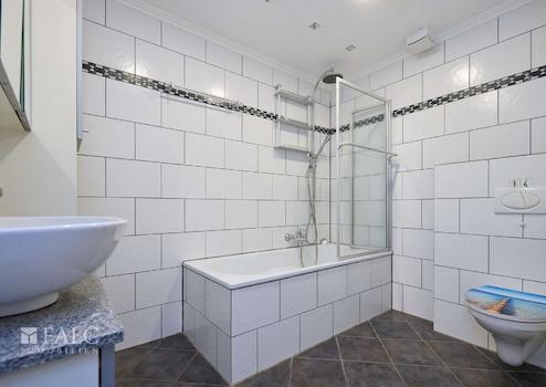 Mehrere Bäder, teils mit Badewanne und Duschabtrennung sowie wandhängendem WC und Waschtisch, sind vorhanden und zeitlos gefliest.