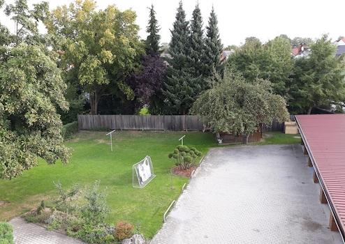 Ein schöner, begrünter Innenhof bietet zusätzlichen Raum zum Entspannen und Spielen – ein echtes Plus für Familien.