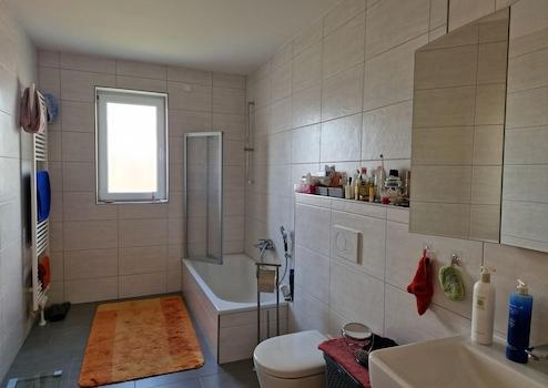 Hochwertige sehr geräumige Einbauküche. Pflegeleichte Vinylböden in Holzoptik. Raumhohe Fenster, Bad raumhoch gefliest, Bad mit Wanne und Duscheinrichtung in der Wanne. Großer Abstellraum in der Wohnung, zusätzlich Kellerabteil und Fahrradkeller. Auf Wunsch können einige Möbel des Mieters übernommen werden.
