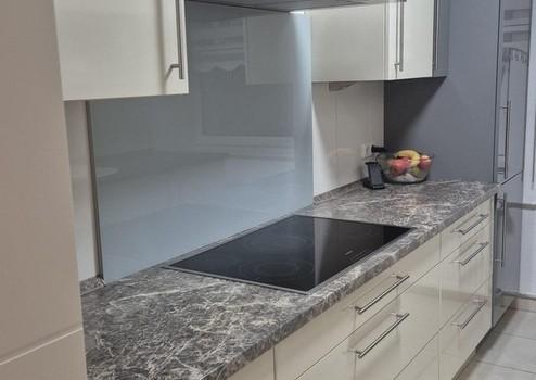 Diverse Einbaugeräte wie z. B. die 80 cm breite Kochplatte, Geschirrspüler und Kühlschrank wurden vor ein Paar Jahren erneuert.