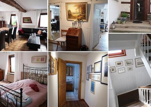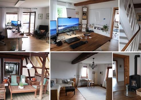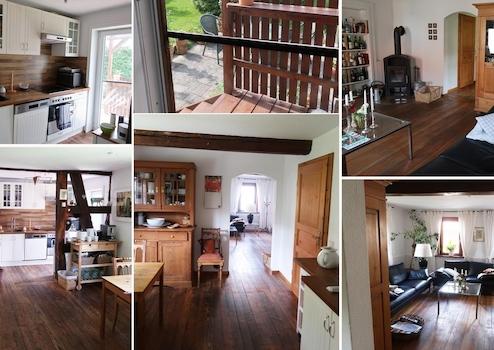 Man könnte 1 Million Sachen verbessern und gestalten. Aber: wir wohnen da – und das seit 17 Jahren und sehr gerne! Man kann also direkt einziehen und die Dinge Stück für Stück verbessern. Man kann sehr viel mit wenig Geld + handwerklichem Geschick machen. Und/oder man kann einige größere Dinge angehen: Dach, Fenster etc. Das Fachwerkhaus stammt ca. aus dem Jahr 1867 und hat hohe Decken (ca. 220 bis 240 cm). Wurde in den 1980er Jahren umfangreich saniert.