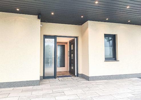 Bereits beim Betreten des Anwesens werden Sie von einem gepflegten Garten und einem eindrucksvollen Vordach begrüßt, das den exklusiven Charakter der Immobilie unterstreicht. Ein Highlight ist der wunderschöne Schwimmpool, der dank einer flexiblen Überdachung bei jeder Witterung genutzt werden kann, Ihr echter Luxus im eigenen Garten.