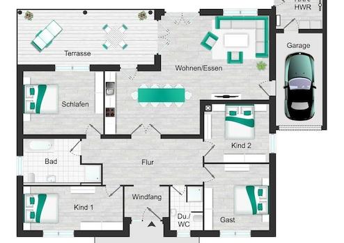 Willkommen in diesem luxuriösen Architekten-Bungalow, der 2017 in massiver Bauweise errichtet wurde und mit 168m² Wohnfläche sowie einem großzügigen Grundstück von 1.071m² höchsten Wohnkomfort bietet. Inmitten einer ruhigen, familienfreundlichen Umgebung erleben Sie hier eine perfekte Kombination aus Stil, Eleganz und funktionalem Design, der ideale Rückzugsort für anspruchsvolle Käufer.
