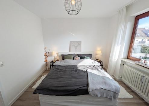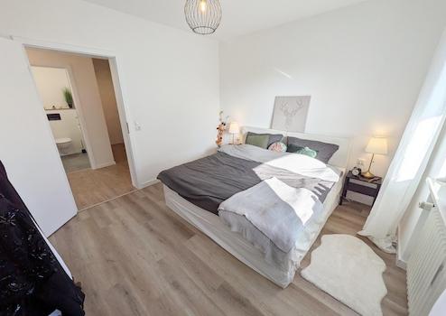 Das helle Schlafzimmer überzeugt durch seinen geräumigen Schnitt, der genügend Platz für ein großes Bett sowie einen Schlafzimmerschrank bietet. Hier werden Sie durch das große Fenster morgens von der Sonne im Osten geweckt.
