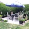 Eine mit Holzstufen versehene Treppe führt in den mit ca. 150 m² großen überschaubaren, pflegeleichten Garten, in dem sich eine ca. 20 m² große Terrasse mit darunter liegender nachhaltiger 5000 Liter-Regenwasser-Zisterne befindet.