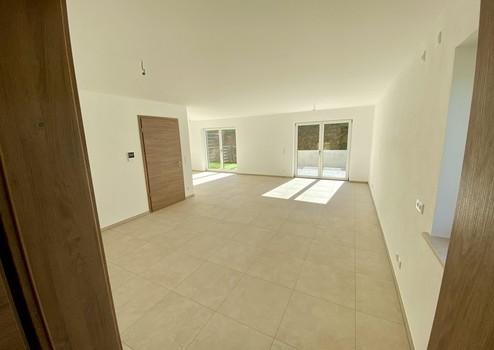 Der großzügige Wohn- und Essbereich bietet genügend Platz für einen Esstisch und eine ansprechende Wohnlandschaft. Darüber hinaus lässt der Kochbereich den Traum von einer individuellen Einbauküche wahr werden. Erwähnenswert ist ebenso der Kamin, der dort eingebaut wird und somit die Option bietet, einen Holzofen anzuschließen.
