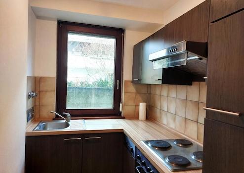 Sowohl die Küche als auch das Badezimmer verfügen über Fenster und profitieren dadurch von natürlichem Tageslicht und guter Belüftung. Das großzügige Badezimmer ist mit WC, Dusche und Badewanne ausgestattet.