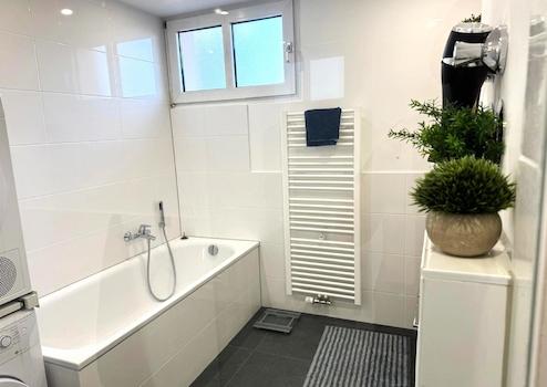 Das Badezimmer wurde renoviert und ist sowohl mit einer Dusche als auch mit einer Badewanne ausgestattet.