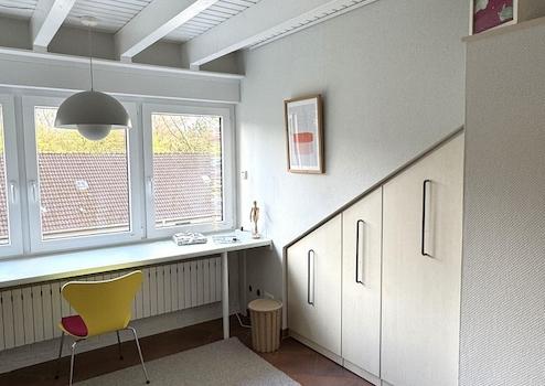 Das 1977 erbaute, sehr gepflegte und seit 2024 stetig modernisierte Reihenendhaus liegt in einer ruhigen Nebenstraße (Sackgasse) am Hang und bietet ausreichend Platz für Familien oder Paare mit Homeoffice-Bedarf. Das Haus verfügt über 6 Zimmer und 2 Badezimmer, verteilt auf 3 Etagen - das Dachgeschoss voll ausgebaut (1 Duschbad + 2 Zimmer). Ein Gäste-WC ist ebenfalls vorhanden. Das Haus ist voll unterkellert, inkl. Sauna und WC und bietet viel zusätzlichen Stauraum, sowie einen direkten Zugang zur Garage.