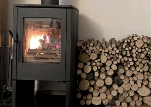 Wohnzimmer Parkett, Schwedenofen
