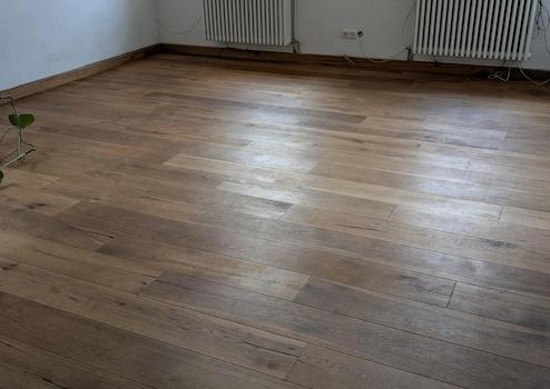 große Diele mit großteils abgeschliffenen historischen Holzdielen