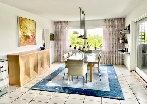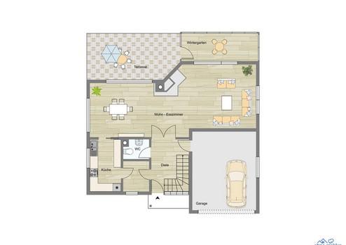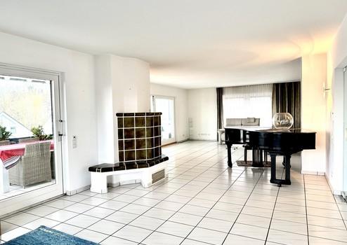 Im EG werden Sie von einer repräsentativen Diele empfangen, die in einen weitläufigen Wohnbereich mit großer Terrasse und zusätzlichen, beheizten Wintergarten mündet, der ganzjährig genutzt werden kann. An den kühlen Tagen wird ein schön gestalteter Kachelofen im Wohn- /Essbereich Ihnen wohlige Wärme spenden.
