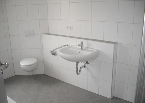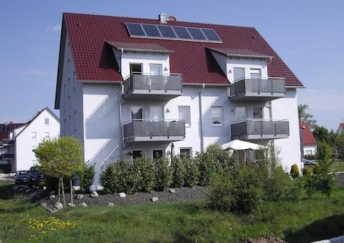 Das Haus wurde Massiv nach der neuesten EnEV und Schallschutzvorschriften erstellt. Moderne Gasbrennwerttechnik und Heizungsunterstützende Solarkollektoren sorgen für niedrige Verbrauchskosten. Das nach Süden ausgerichtete Essen/Wohnen mit Fliesenbereich im Kochbereich und hochwertigen Echtholzparkett ist sehr hell. Das Schlafzimmer ist angenehm ruhig gelegen. Ein modernes Tageslichtbad mit großzügiger Badewanne (1,80 x 0,80 m), Dusche, Fußbodenheizung und Handtuchwärmer lädt zum Entspannen ein. Im Kinderzimmer, Studio, Wohnen befinden sich zusätzliche Anschlußmöglichkeiten für Fernsehen und Internet/Telefon. Im Schlafzimmer ist ebenfalls Fernsehanschluß vorhanden. Das Studio ist von der Einrichtung frei gestaltbar (z. B. Wohnen, Kinder, Schlafen, Arbeiten usw.). Zu der Wohnung gehört ein geräumiger Abstellraum im Keller mit Stromversorgung. Im Keller befindet sich auch der Waschmaschinen- und Trocknerraum. Der Südbalkon hat die Abemessungen 2,30 x 3,25 m (7,48 qm). Im Außenbereich können abschließbare Fahrradständer angemietet werden.