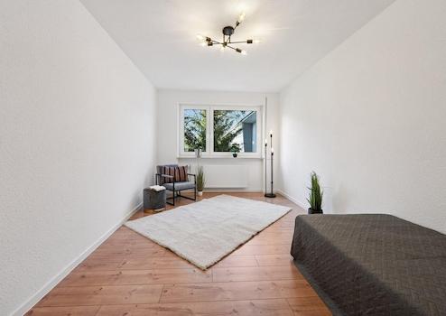 Genießen Sie den Erstbezug nach hochwertiger Sanierung in dieser perfekt geschnittenen 4-Zimmer-Wohnung, die sich im Hochparterre eines gepflegten MHF befindet. Die Wohnung überzeugt Sie vom ersten Blick mit geräumigem und hellem Flur, frisch tapezierte Wänden und einem modernen Designerboden. Das lichtdurchflutete Wohnzimmer bietet viel Platz und hat ein Zugang zum sonnigen Balkon mit Blick auf die Grünfläche. Der gemütliche Balkon lädt zur Erholung ein und lässt Sie die Sonne bis in die späten Abendstunden genießen. Drei weitere Zimmer können zum einen als Elternschlafzimmer und zum anderen als Kinderzimmer bzw. Büro genutzt werden. Das Bad verfügt über eine moderne Sanitärausstattung und einen Waschmaschinenanschluss. Ein separates WC sowie ein Abstellraum sind vorhanden. Der abgeschlossene Keller- bzw. Hobbyraum liegt sehr praktisch unter der Wohnung. Beheizt wird die Wohnung über Fernwärme. Sie Parken bequem auf den zahlreichen freien Parkplätzen vor dem Haus.