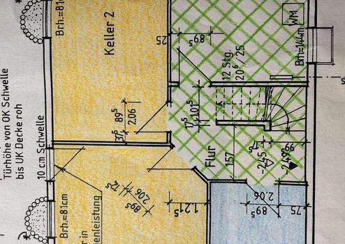 Das Objekt verfügt über ein Erdgeschoß als eigenständige Wohnung mit einer Grundfläche von 77m2, welche aber problemlos mit dem Dachgeschoß als eine Wohneinheit zusammengeführt werden kann. Das Dachgeschoß mit 53m2 kann als Einliegerwohnung genutzt werden, da es mittels Windfang getrennt, über eine eigenen Eingangstür verfügt. Weiterhin ist der Keller mit einer Deckenhöhe von 2,18m, teilweise außenisoliert und als Souterrain ausgeführt. Damit sind ca. 55m2 der 85m2 Kellerfläche als Wohnbereich mit eigenem Bad und Küche ausbaubar.