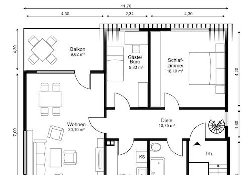 - *Balkon (ca. 10m²), gefliest, teilweise überdacht, Nordseite