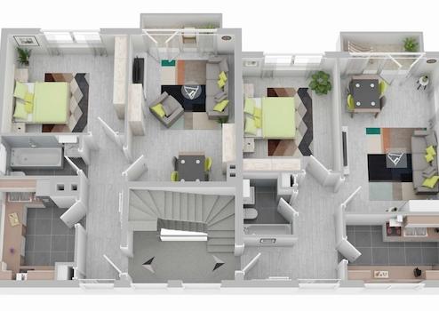 Die visualisierten Grundrisse in diesem Exposé dienen nur der besseren Darstellung der Räume, kleine Abweichungen sind möglich. Ebenso stellen die KI-Animationen lediglich eine Annahme dar, wie ggf. die Räume ausgestaltet werden können.
