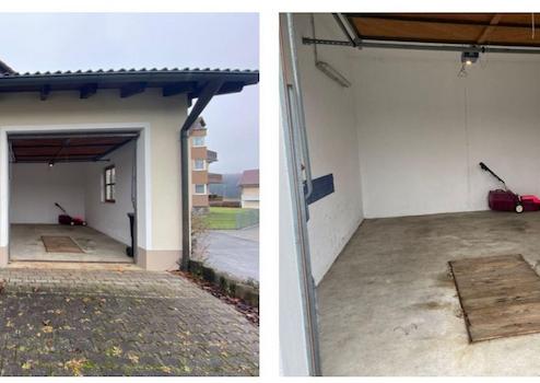 GARAGE: Einfachgarage mit Zufahrt und Zugang in den Keller über eine Bodenluke z.B. für Autoreparaturen. Die Garage verfügt über ein elektrisches Garagentor und ist höher als Standard gebaut.