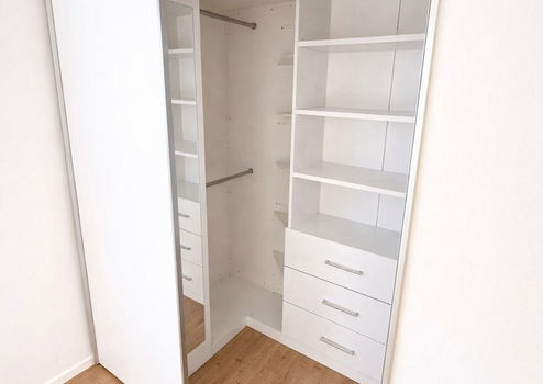 Der Wohnbereich präsentiert sich offen und hell und bietet direkten Zugang zum Balkon, der zum Entspannen im Freien einlädt. Eine Einbauküche und ein begehbarer Kleiderschrank sorgt für zusätzlichen Stauraum und Wohnkomfort.