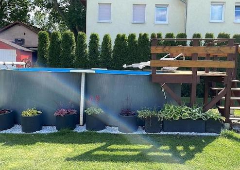 •Pool: beheizter Pool mit Pooldeck, 4,70x3m, mit UV-Desinfektion und Wärme-Luftpumpe