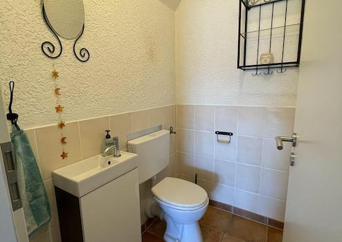 Balkon, Gäste-WC, Kamin, Laminat, Fliesen