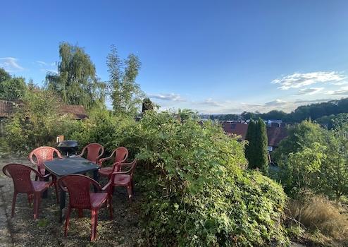 Individuell ausgestattetes freistehendes Haus mit Fernblick, einem uneinsehbaren Innenhof und einem uneinsehbaren Grundstück mit einem großen Garten! Das Mietobjekt ist nur etwas für Gartenfreunde! Details werden nach ...