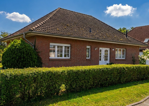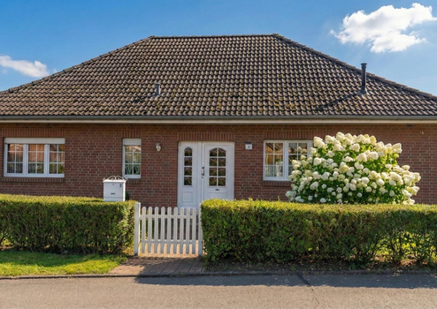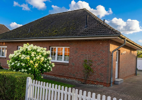 Zum Verkauf steht ein klassischer, massiver Rotklinker-Bungalow aus dem Baujahr 1996 in äußerst gepflegtem Zustand. Das Haus besticht durch seine solide Bauweise und den charmanten Landhaus-Stil mit weißen Sprossenfenstern (Kunststoff-Iso) und Friesenzaun.
