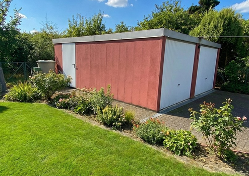 AUSSENBEREICH Das Haus steht auf einem ca. 600 m² großen Eigentumsgrundstück in idealer Ausrichtung. Der Garten ist pflegeleicht mit Rasenflächen, Hortensien und Ziersträuchern angelegt und bietet viel Privatsphäre zum Entspannen. Die große, geflieste Terrasse ist mit einer Markise ausgestattet. Für Ihre Fahrzeuge stehen 2 Garagen sowie eine gepflasterte Auffahrt zur Verfügung.