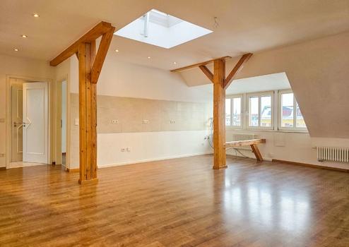 Liebhaber-Details: Die omnipräsente, sichtbare Balkenstruktur verleiht der Wohnung einen Loft-Charakter mit besonderem Flair. Die Modernisierung im Jahr 2014 verleiht trotz historischem Charme einen zeitgemäßen Charakter.