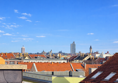 Exklusive Dachterrasse: Genießen Sie auf ca. 35 m² Außenfläche einen spektakulären 360° Panoramablick über ganz Leipzig.