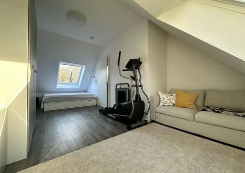 Das Herzstück bildet der weitläufige Wohn- und Essbereich mit Zugang zum sonnigen Südbalkon (elektrische Markise). Aus dem Dachgeschoss genießen Sie einen beeindruckenden Ausblick bis zum Killesbergturm.