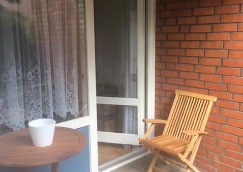 Zur Wohnung gehört ein schöner ebenerdiger Balkon/Terrasse zum hinteren Garten bzw. zur Hofseite.