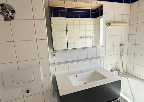 •Badezimmer (ca. 3,91 m²) mit Badewanne, Waschbecken sowie neuem Spiegel- und Unterschrank