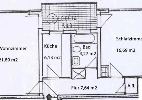 Küchenzeile, TGL-Bad, Abst.-Raum, Loggia, Keller, KFZ-Abstellplatz, Gemeinschaftswaschkeller und Trockenkeller.