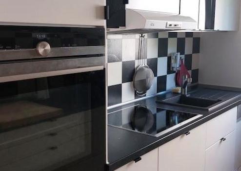 - Komplett ausgestattete Küche mit Spülmaschine, Backofen, Kühl- und Gefrierkombination sowie einem Induktionsherd.