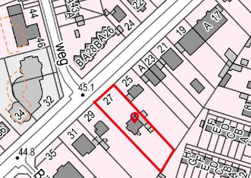 In der Mitte des Grundstücks steht ein dreistöckiges Haus, jedes Stockwerk besteht aus einer Einliegerwohnung. Seit Jahrzehnten wird das komplette Haus von einer einzigen Familie bewohnt. Das schöne Haus wurde vor dem 2. Weltkrieg in Steinbauweise mit Holzdachstuhl errichtet. Aus altersbedingten Gründen wird es verkauft und ist damit komplett mietfrei.