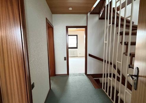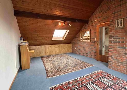 Offiziell 117 m² großes, zum linken Nachbarn versetzt angeordnetes Reihenhaus aus 1972, nachträglich wurde das Dachgeschoss mit einem großen Hobbyraum und einem kleinen Büro o.ä. in Eigenregie ausgebaut (ca. 28 m² ...