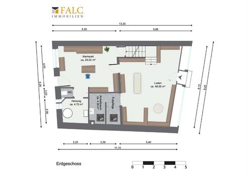 Das Erdgeschoss bietet zudem die Möglichkeit einer gewerblichen Nutzung, beispielsweise als kleines Ladengeschäft oder Kaufhaus. Durch die gute Raumaufteilung und die zentrale Lage eignet sich diese Einheit hervorragend für eine Kombination aus Wohnen und Arbeiten unter einem Dach.